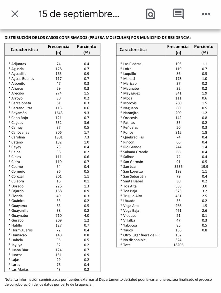 (15/septiembre) Muertes confirmadas por #COVID19 reportadas hoy en #PuertoRico