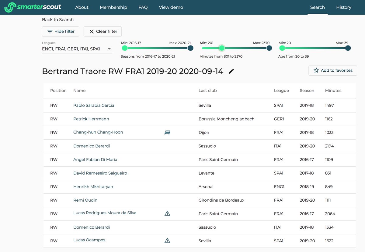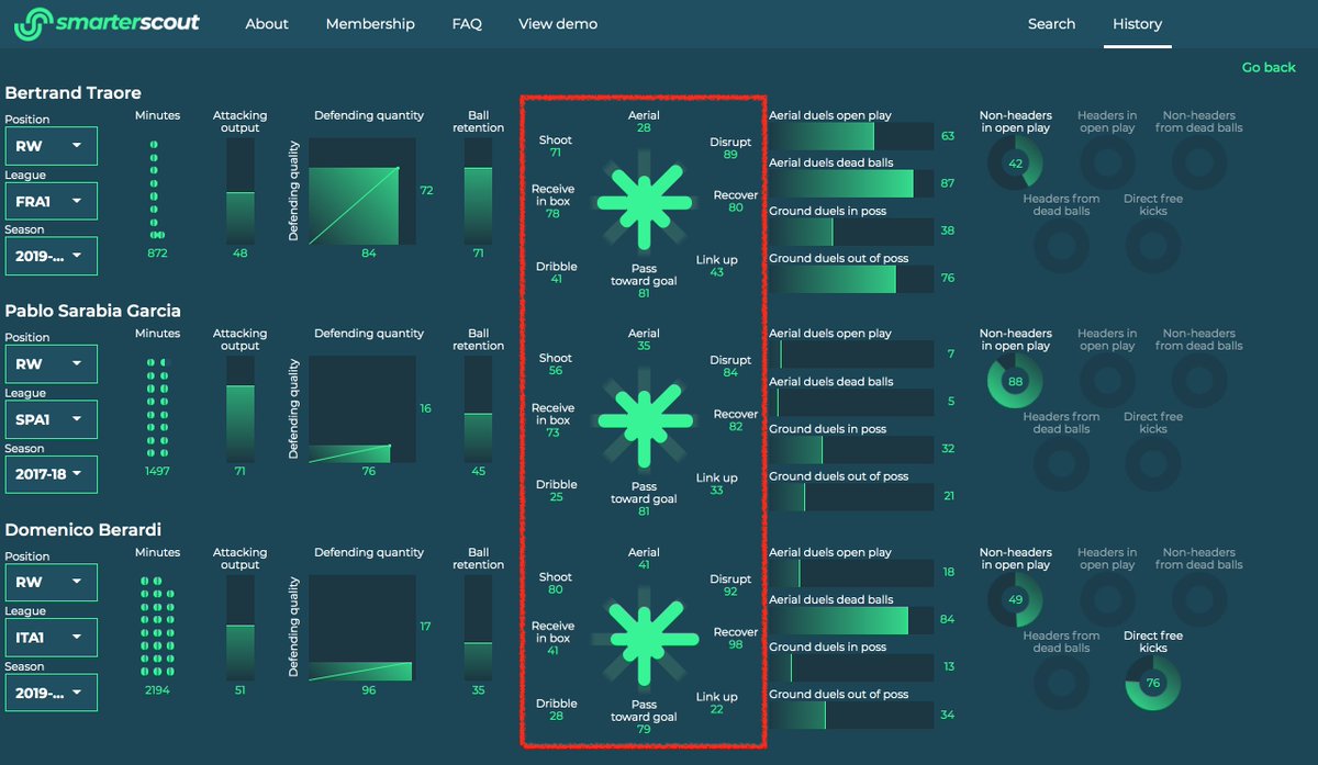 If we look for players with a similar style to Traoré's in Europe's top five leagues, there are some really good names – versatile playmakers who work hard off the ball. Here's a side-by-side comparison with two of them: