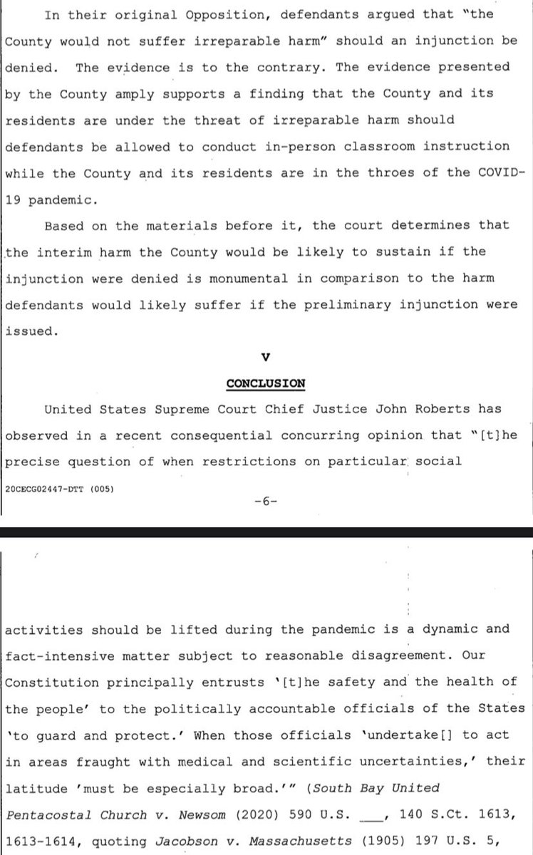 He added that “based on the materials before it, the court determines that the interim harm the County would be likely to sustain if the injunction were denied is monumental in comparison to the harm defendants would likely suffer if the preliminary injunction were issued.”