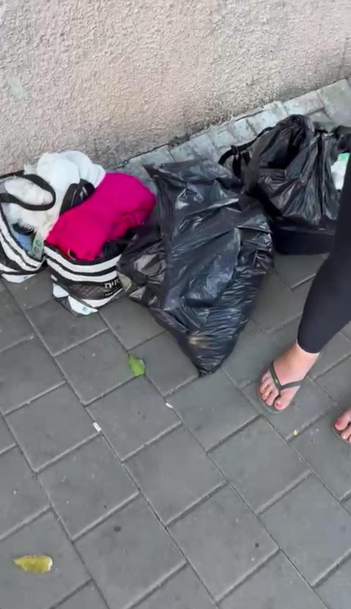 מילולית, עם שקיות בגדים, ברחוב.