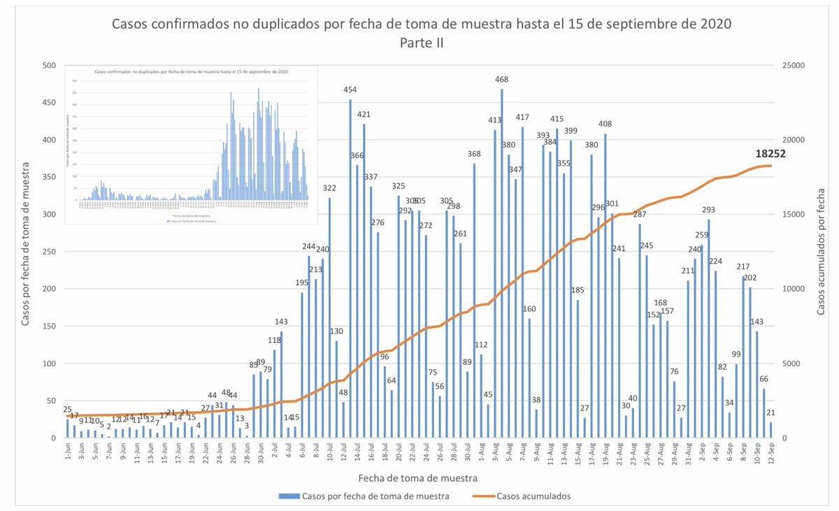 2.) 18,252 casos de #COVID19 acumulados en #PuertoRico. Muestras del 9 de marzo al 12 de septiembre.