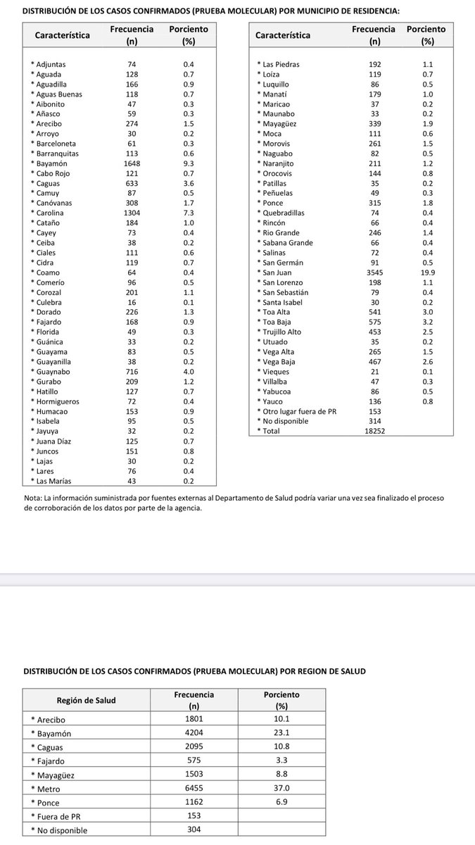 (20/octubre) La muerte confirmada por #COVID19 reportada en el informe de hoy, ocurrió el 18 de octubre. Corresponde a una mujer de 61 años, de la región de Bayamón. #PuertoRico