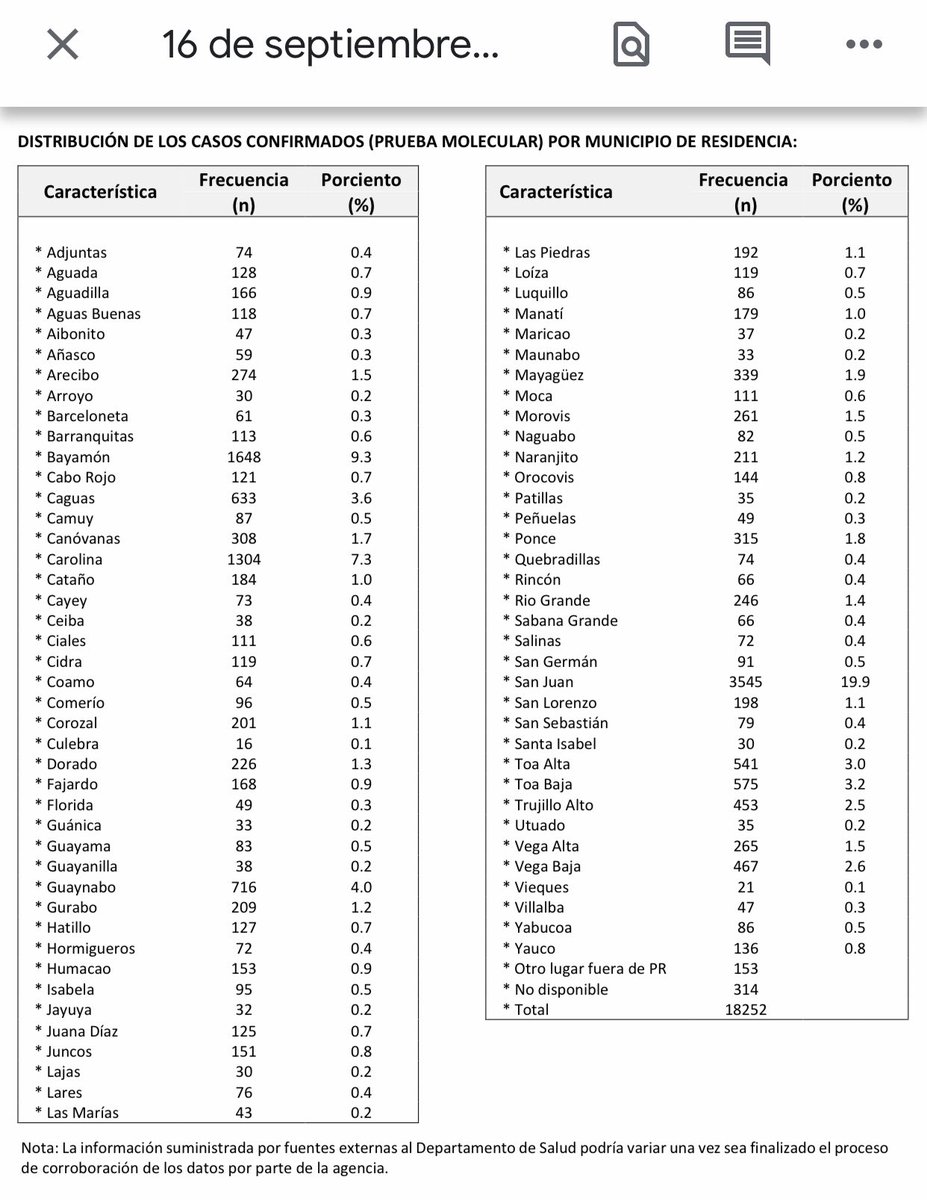 (16/septiembre) Sobre las 19 muertes por #COVID19 reportadas hoy en #PuertoRico: