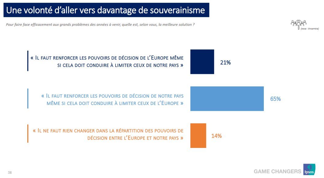 đŸ“ŠđŸ‡«đŸ‡·đŸ‡ȘđŸ‡ș PrĂšs de deux tiers des Français (65%) souhaitent que les pouvoirs de dĂ©cision soient renforcĂ©s au niveau de la France "mĂȘme si cela doit conduire Ă  limiter ceux de l'Europe"