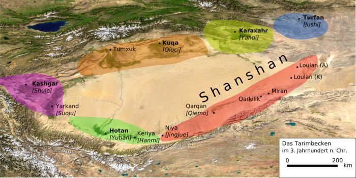 Tens of thousands of Han Chinese refugees fled war-torn Northern China to seek shelter in relatively peaceful Turpan. Thus began the Han Chinese Kingdom of Gaochang 高昌. Gaochang existed as a buffer state btw Northern Wei and Rouran Khaganate during era of Ballad of #Mulan