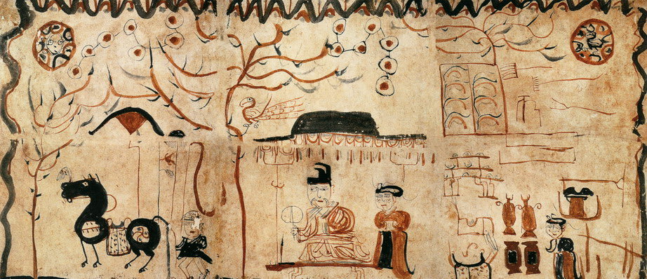 Tomb Mural unearthed from Astana Cemetery in Turpan, #Xinjiang from Gaochang Kingdom Era depicted tomb owner in Jin Dynasty era dress