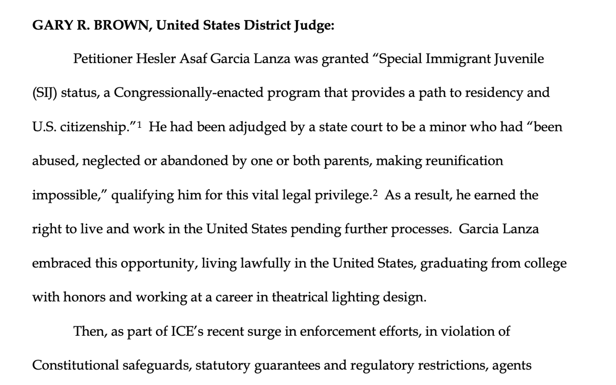 'UNIMAGINABLE CRUELTY': Judge Gary Brown, a Trump appointeee from NY, absolutely thrashes DHS' treatment of a man who came to the US. at age 9 and deemed an abuse/neglect victim, has no criminal record and became a college grad.