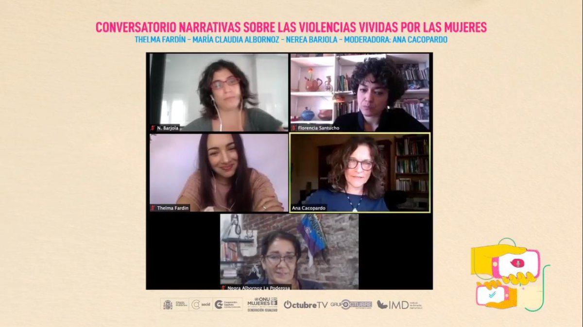 #AHORA Para replicar la voz de todas las villeras, La Negra Albornoz, vecina del barrio Chalet, participa junto con @soythelmafardin, @NBarjola e Itziar Ituño, del conversatorio "Narrativas sobre las violencias vividas por las mujeres".