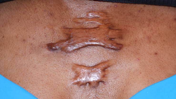 When you get injured in the healing process your body might form scars to heal the wound, certain times there is accumulation of excessive amount of collagen resulting in a raised scar which do not regress.