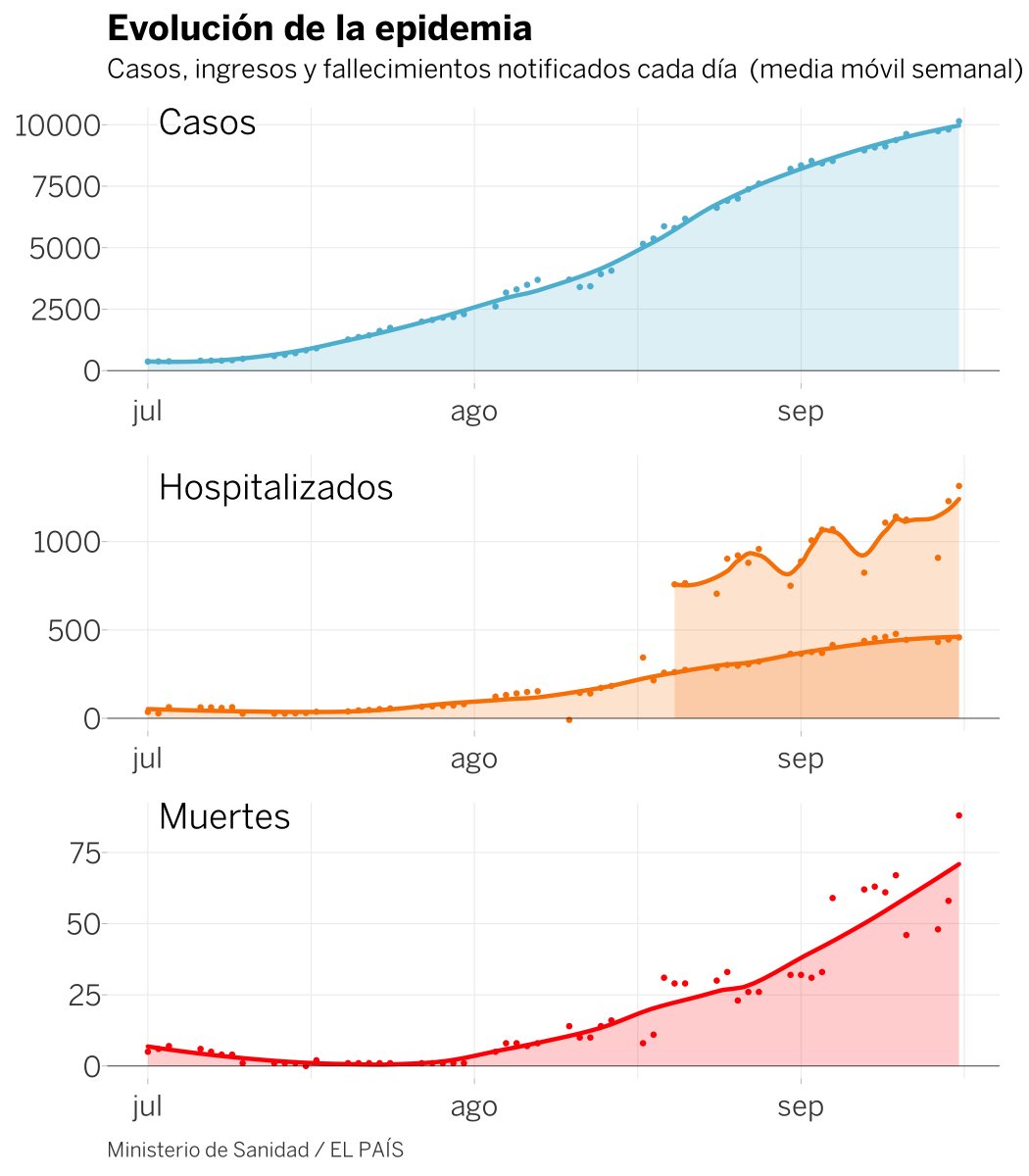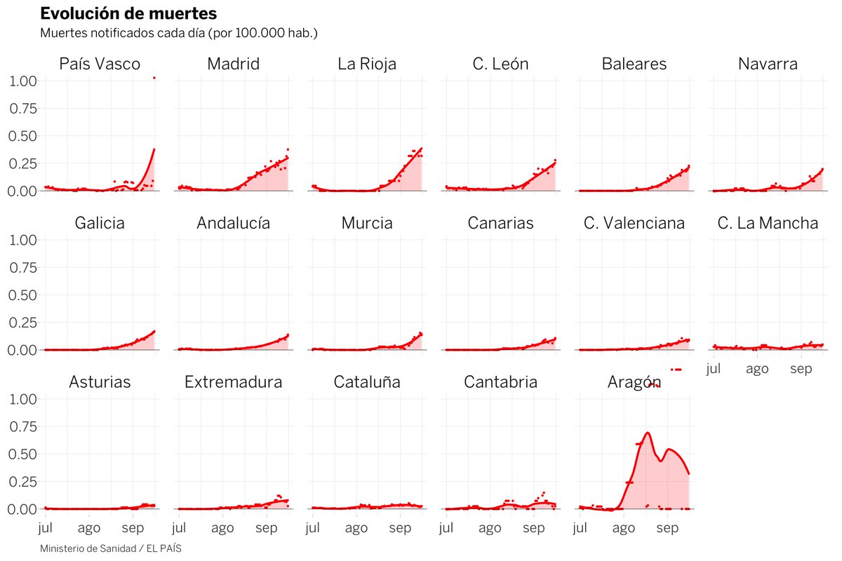 3/ Aquí casos, ingresos y muertes en todas las CCAA. (Son datos de notificación, así que hay días con picos, como hoy País Vasco.)