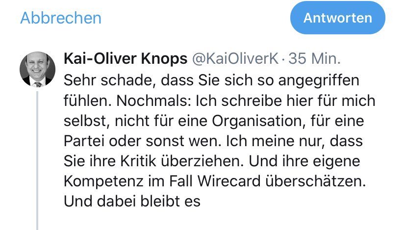 Was ist nur mit manchen Leuten los? Der werte Hr Prof @KaiOliverK - seines Zeichens Mitglied der SPD Hamburg und Berater des @BMF_Bund - koffert mich erst völlig aus dem off auf Twitter an (ich hätte keine Kompetenz und würde Dinge über @OlafScholz absondern!)