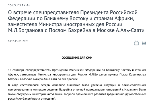 Bogdanov also met with #Bahrain's ambassador to discuss the decision to normalise relations with #Israel.