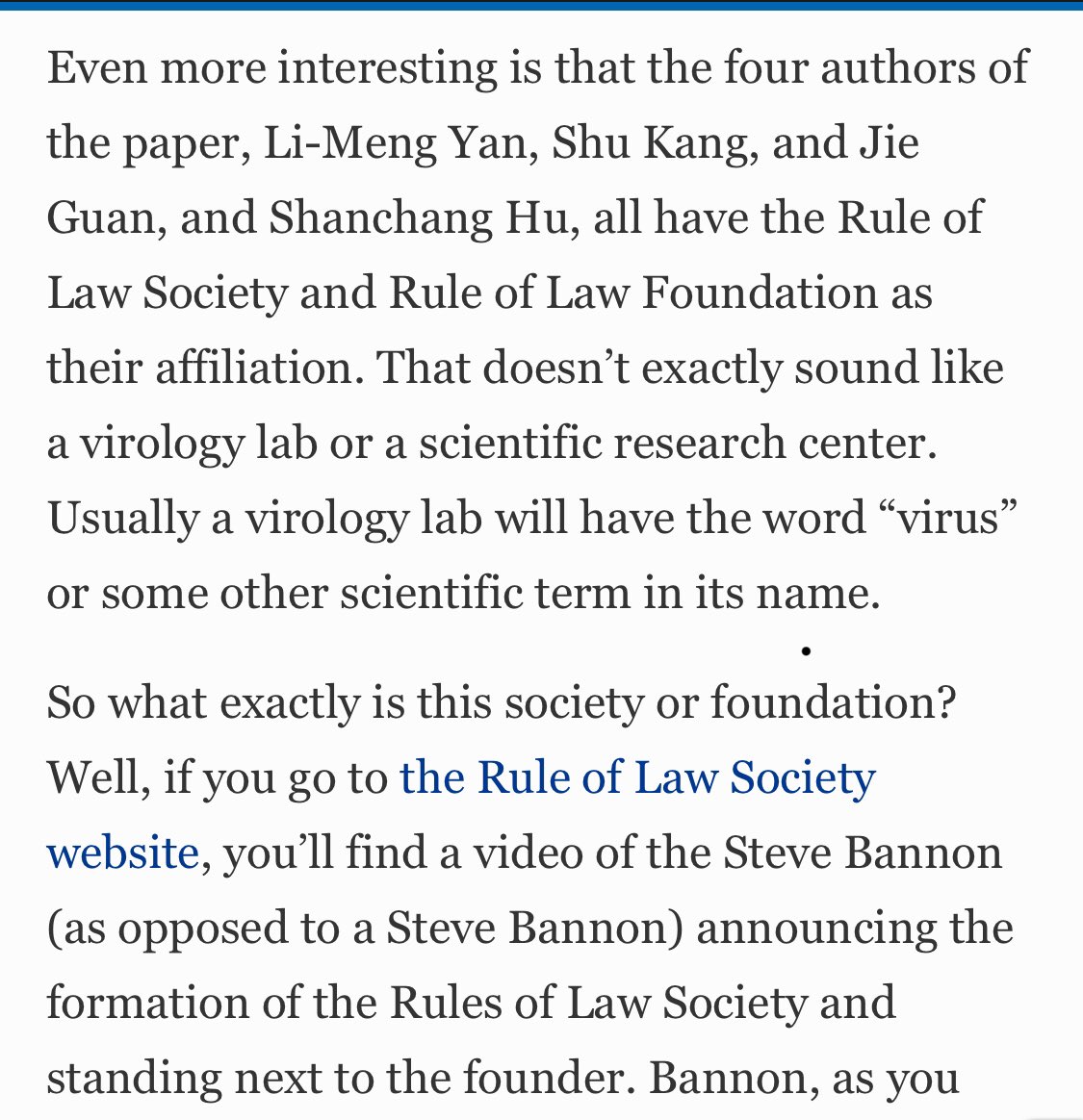 Guo and Bannon started running the conspiracy theory in January. Then they said they got four scientists from WuHan Lab fleeing China to Europe.