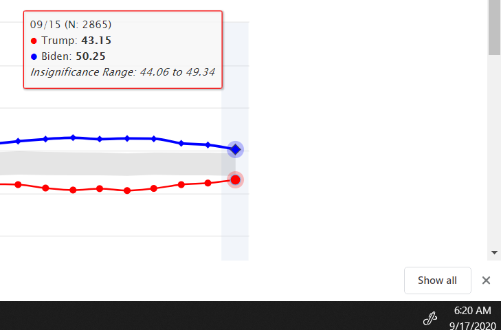 And this is the second time in a week, that hours, not minutes have been logged with no fresh data. But, let's get back to how confusing this can be. Dornsife may only publish 16 September's data on 17 September. That's why, when I publish my analyses, they have the latter date.