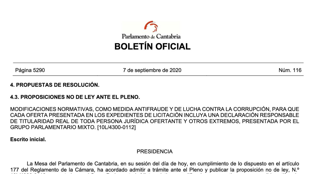 Mi estudio sobre los contratos menores adjudicados a políticos fue mencionado el lunes en el pleno del Parlamento de Cantabria.