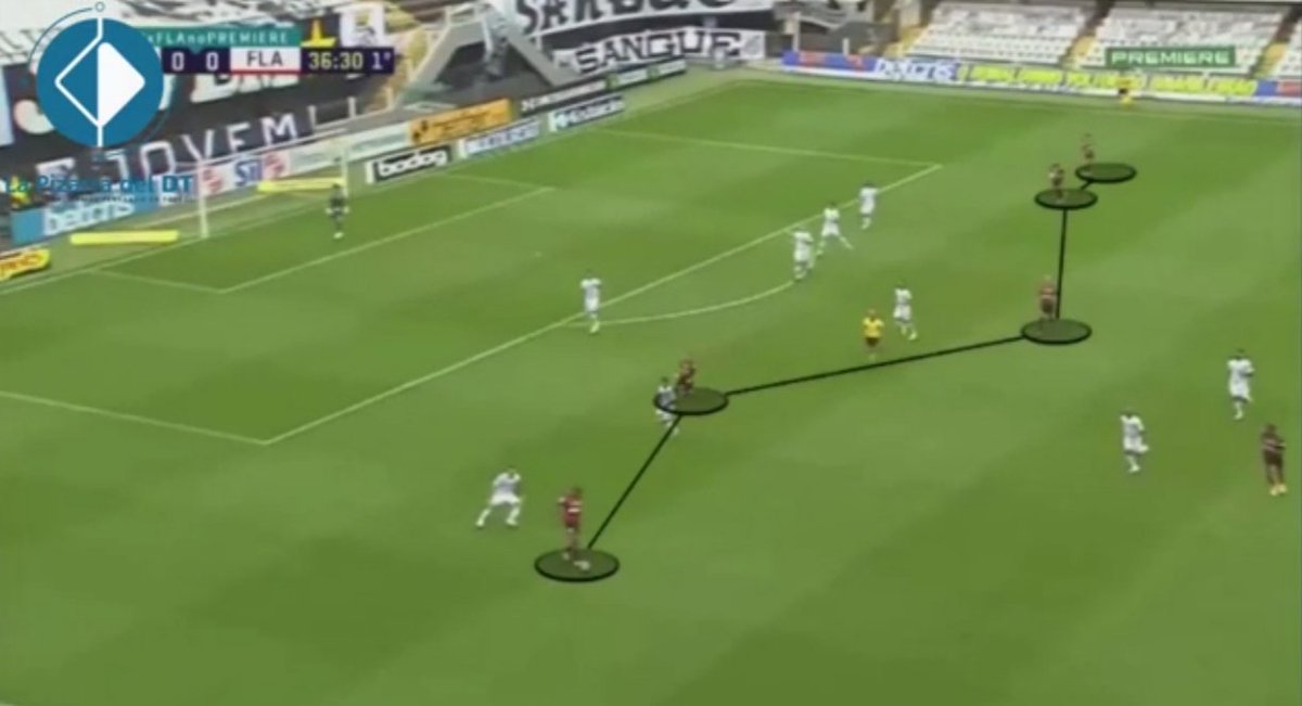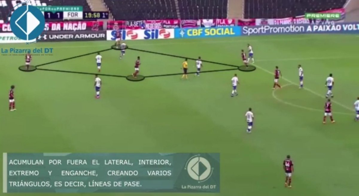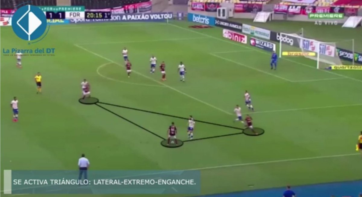 Para romper la línea defensiva, el "Fla" se asociaba por los costados con sus laterales y extremos.
