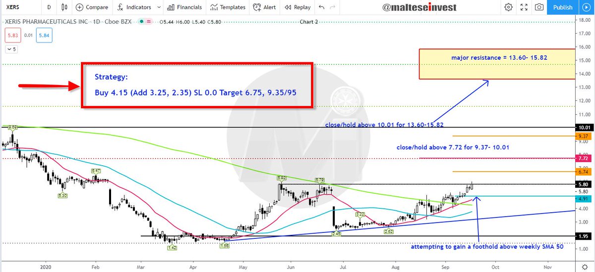 Weekly Chart: Price is attempting to gain a foothold above the #SMA 50 immediate resistance at 7.72 for 9.37- 10.01 (Mar. 2019 #pivot) with a break above the latter running into the major #resistance zone of 13.60-15.82. To the .....