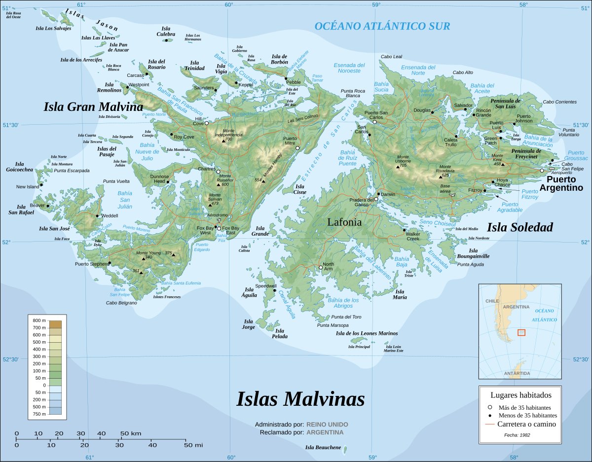2) Las Islas Malvinas son un archipiélago formado por 2 islas principales, Gran Malvina y Soledad, y además otras 200 islas más pequeñas: San José, Trinidad, Borbón, Águila, etc.