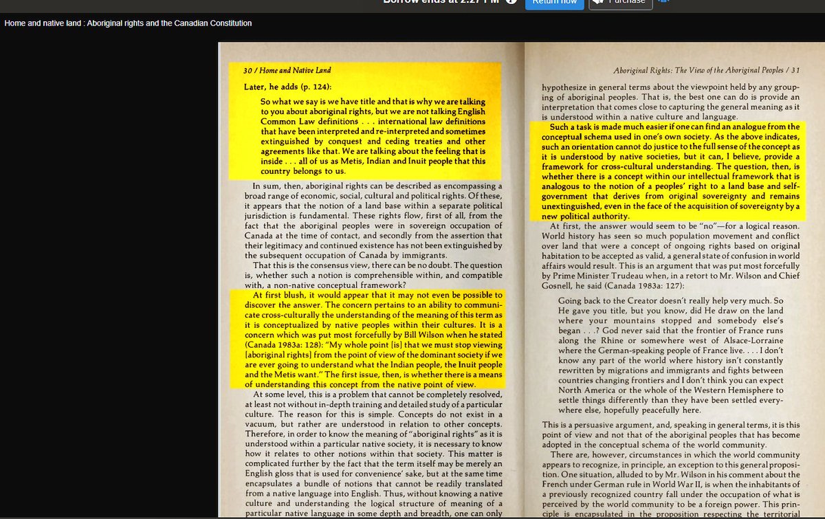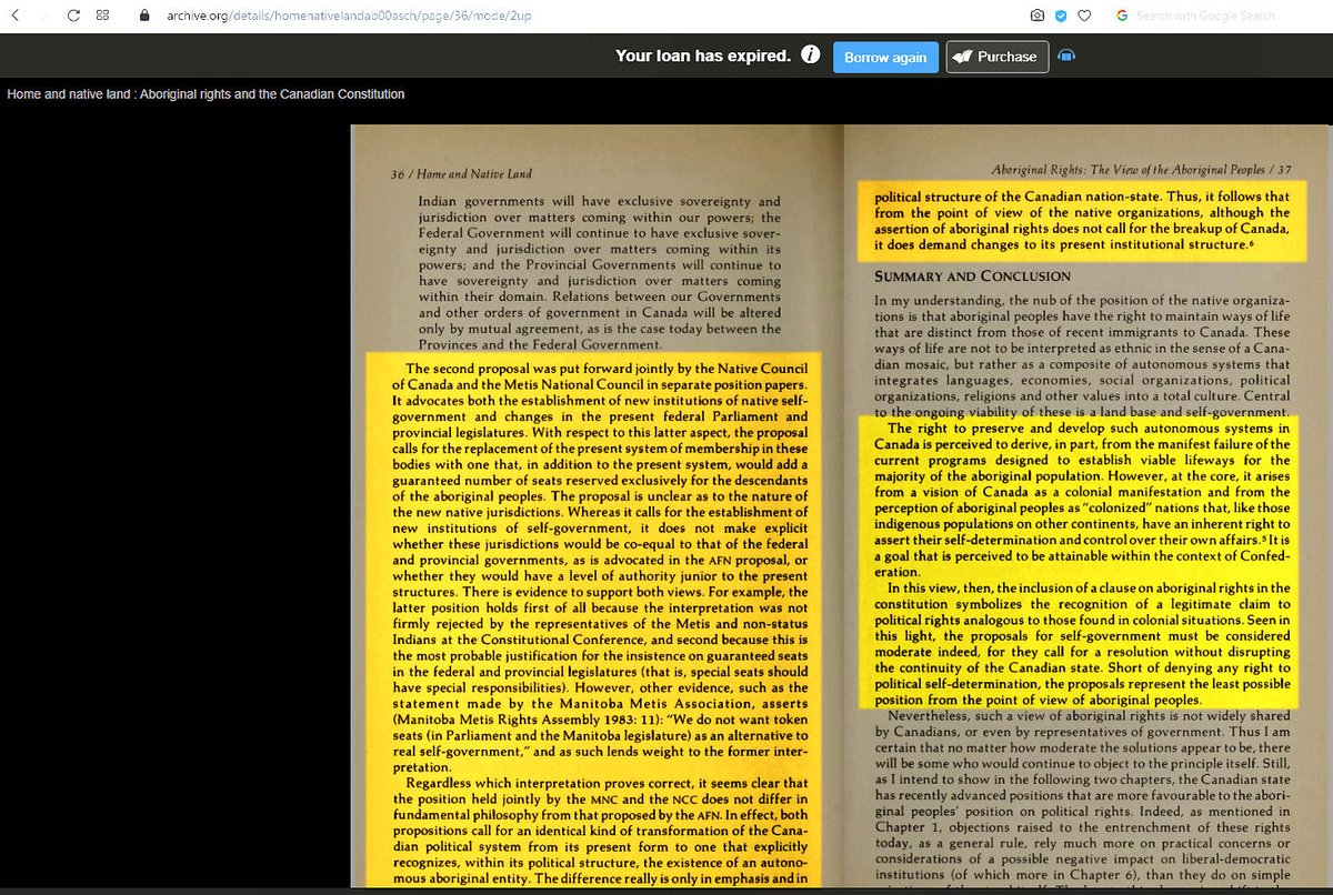 Home and native land- Aboriginal rights and the Canadian Constitution by Asch, Michael 1984 - Bill Wilson - NCC principle of original sovereignty.