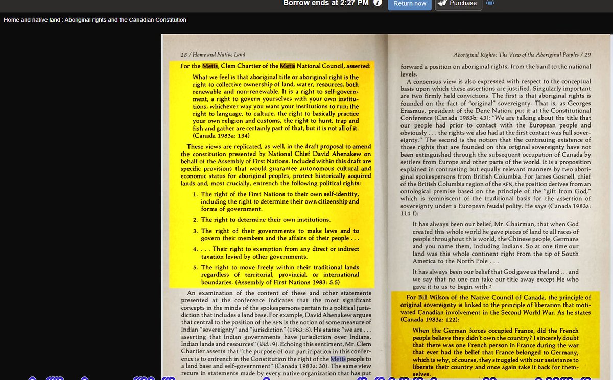 Home and native land- Aboriginal rights and the Canadian Constitution by Asch, Michael 1984 - position held jointly by the MNC and NCC does not differ in fundamental philosophy from that proposed by AFN.