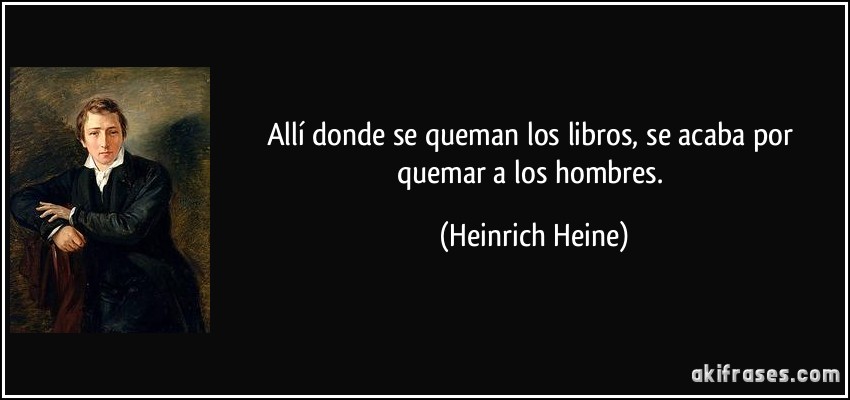 5/ A nadie se le escapa que la quema de libros tiene un potente simbolismo y que se vincula en nuestra mente a las quemas de libros de la Alemania Nazi, siendo la paradigmática la de unos 20.000 volúmenes el 10 de mayo de 1933. Hoy allí está una placa con la sentencia de Heine: