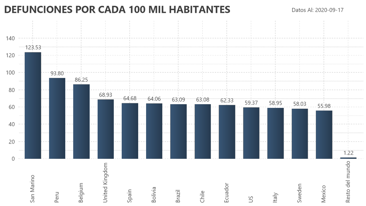 El estado de los decesos a nivel global es el siguiente. Hoy somos el país número 5 con más decesos totales, y el 6 en decesos nuevos en el mundo con 265.