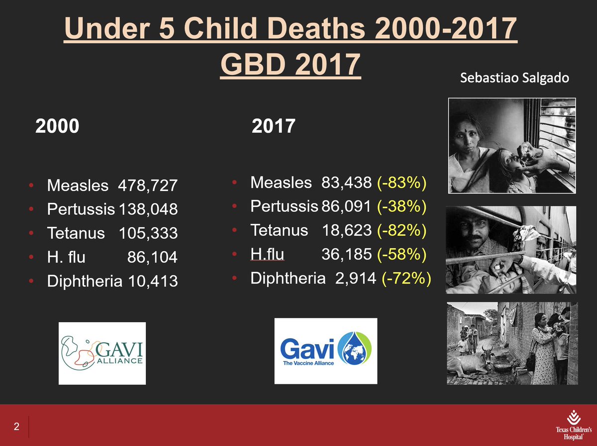 3/ On to this week’s grand rounds. @ 6:15, @PeterHotez began by illustrating the value of vaccines; tens of thousands of lives have been saved between 2000 and 2017 by vaccinating children (Figure).