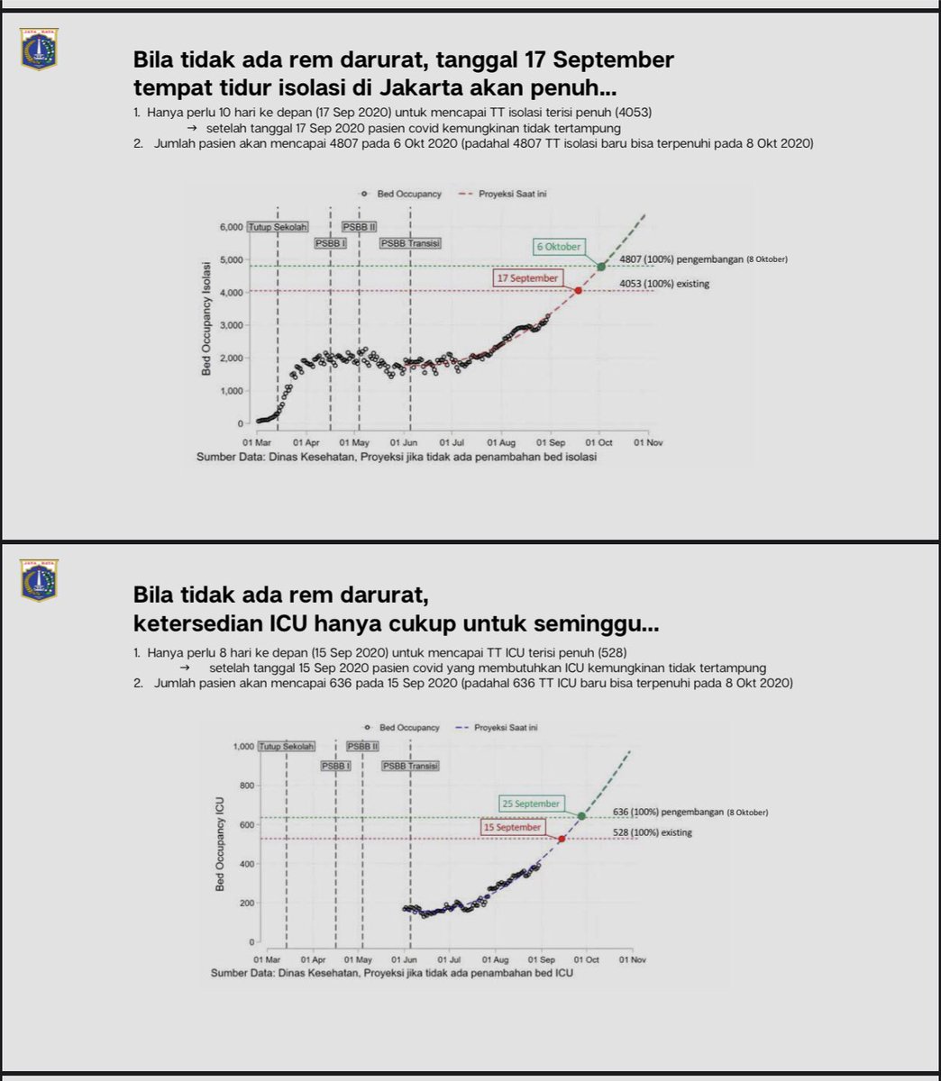 Teringat konpers Rem Darurat Rabu pekan lalu, Gub Anies mengumumkan keterisian tempat tidur utk ICU akan PENUH per 15 Sept 2020 dan ruang isolasi akan PENUH pada 17 Sept 2020