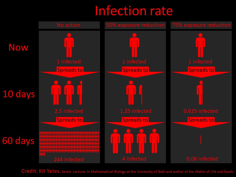 Perlu diketahui, COVID-19 itu memiliki angka reproduksi 1,5-4. Artinya 1 orang positif bisa berpotensi menularkan ke 1,5-4 orang. Infografis tadi hanya mengasumsikan titik tengahnya yaitu 2,5