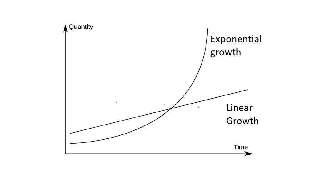 Penambahan kasus itu misalnya dari 1 menjadi 2 menjadi 4 menjadi 8 menjadi 16 menjadi 32 dst.