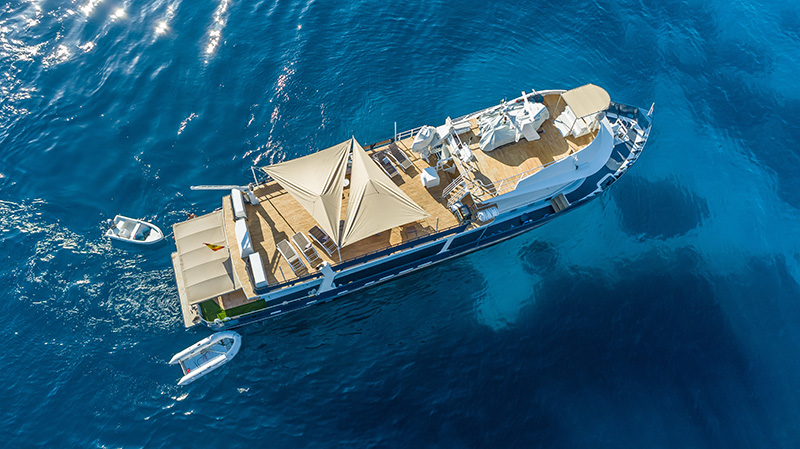 Si el tiempo es bueno las clases puede impartirlas en cubierta, que es lo mejor del barco. Amplia y personalizable para la ocasión. Un rato de charla, otro de sol, unas ostras, un arroz negro con su alioli, un buen cubata para rematar el día. Image