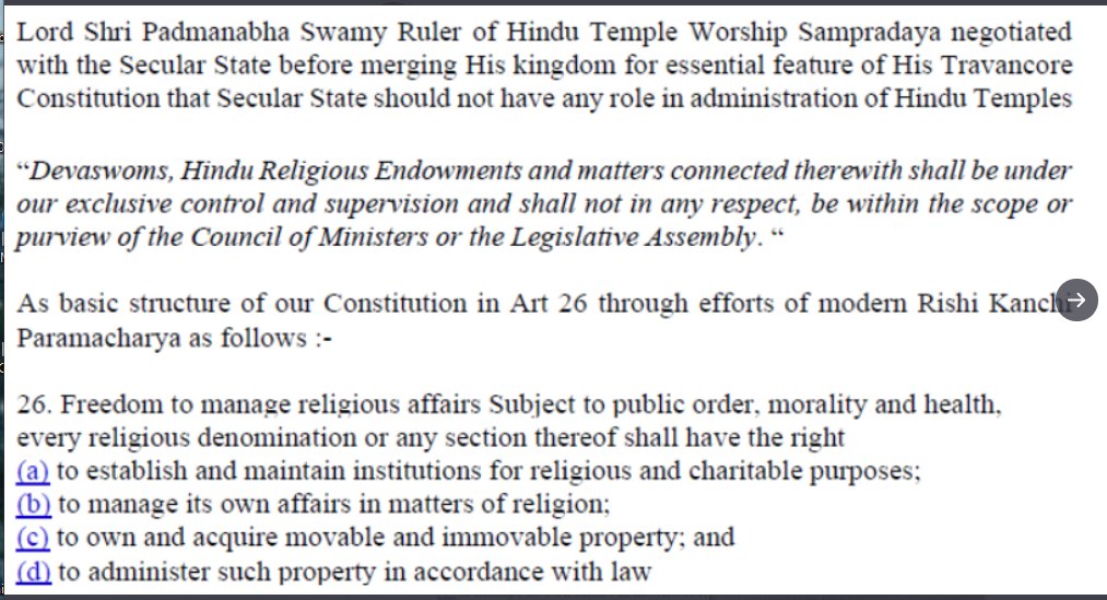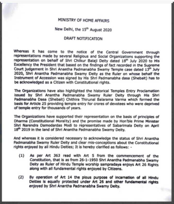 Chilkur Balaji Art 26 #DeityRightsMovement notification will not only render amendments to TC act of Kerala Govt for TDB control diluting pious purpose of Lord Shri Padmanabha Swamy. It will also pave the way for similar Dharmika Parishad body replacing Secular Govt in all States