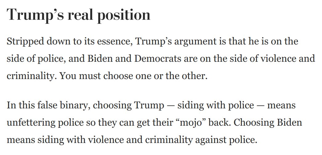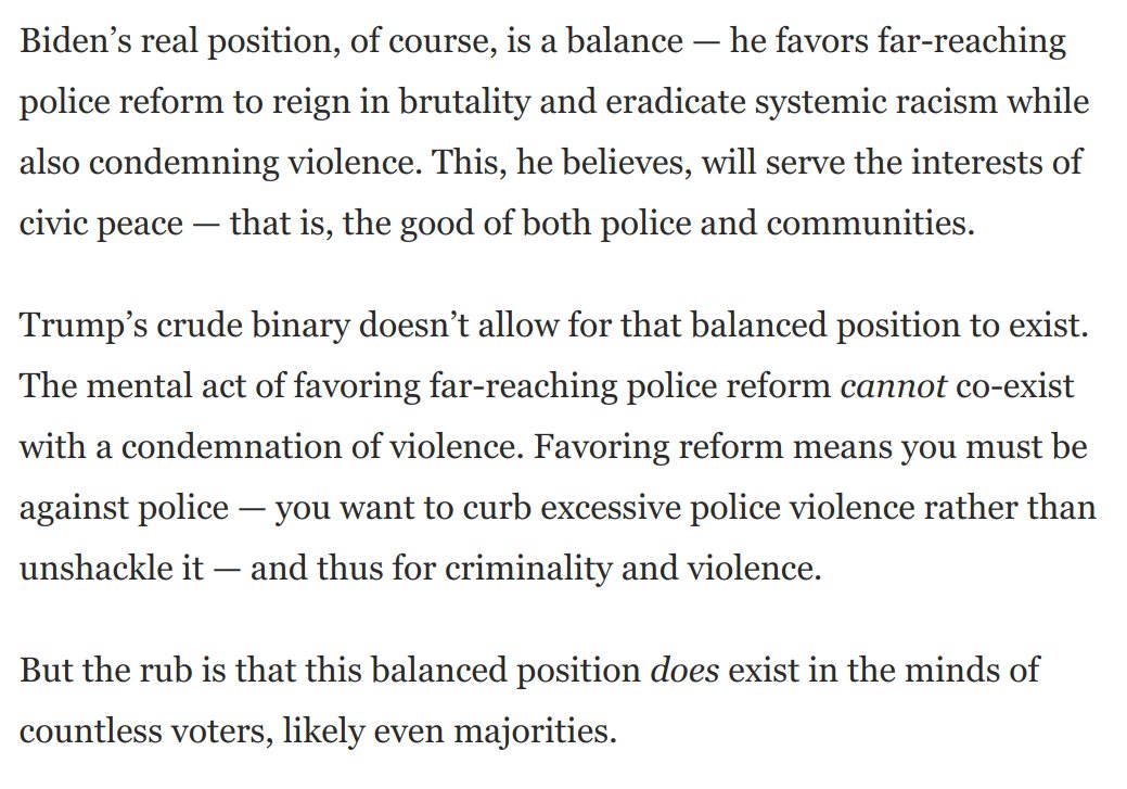Remarkable: In new NYT/Siena polls, Biden is more trusted on "law and order" in Arizona, Wisconsin and Minnesota. Why? Maybe because Trump's call for unshackled state and vigilante violence is perceived as the extreme and destructive position. New piece: washingtonpost.com/opinions/2020/…