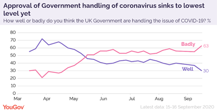 Govt approval on Covid -33 this week, from -18 last week. This is the lowest since the start @YouGov