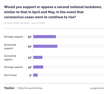 Caution about Covid and rising pessimism about how its being handled generates broad public permission for a national lockdown if required (66%), though a much larger group (27%) are opposed than in the Spring.