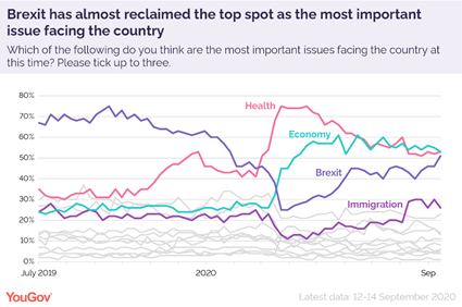 - Brexit at its highest salience since Covid began: 51% pick as a top 3 issue with YouGov yougov.co.uk/topics/politic…