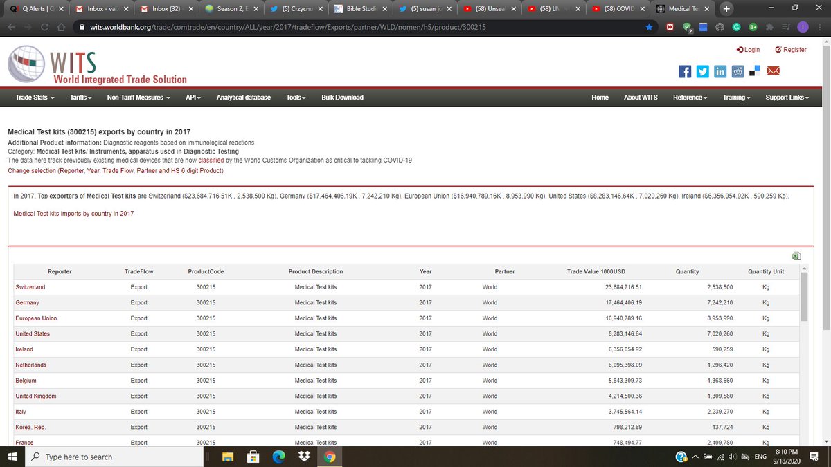 Medical Test kits (300215) exports by country in 2017 wits.worldbank.org/trade/comtrade…