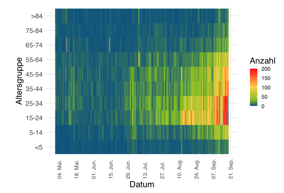 Und zum Abschluss die Altersstruktur der neuregistrierten Fälle: