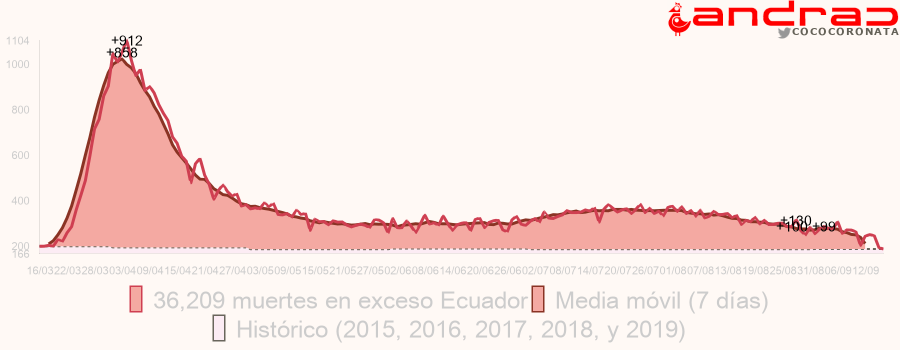 * Exceso encima de mediana histórica de 5 años anteriores desde Marzo 19.