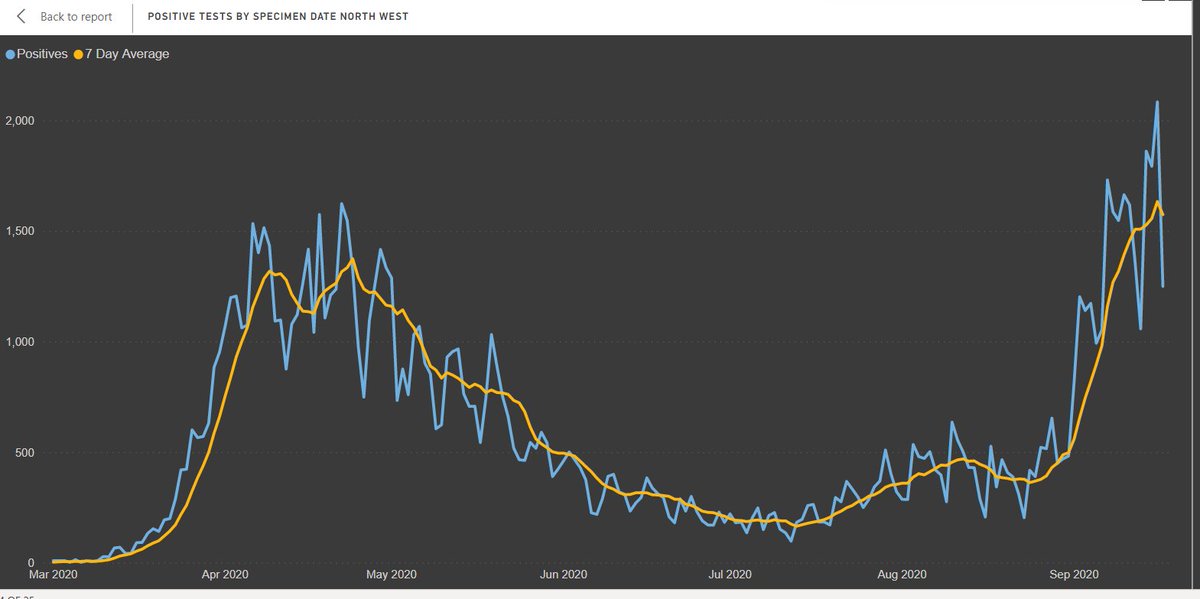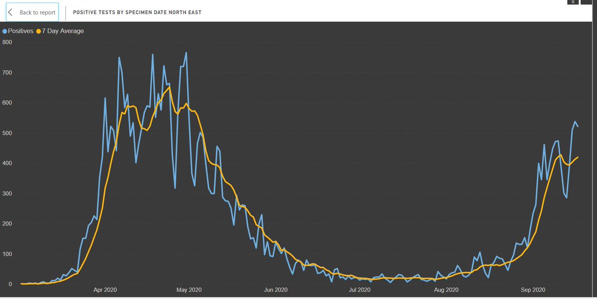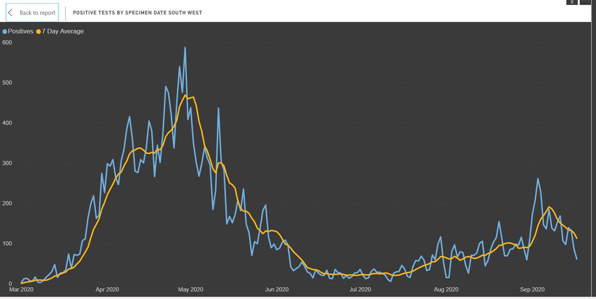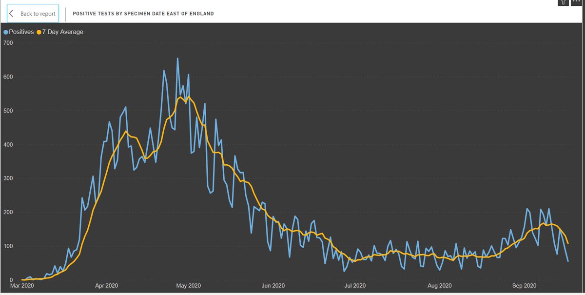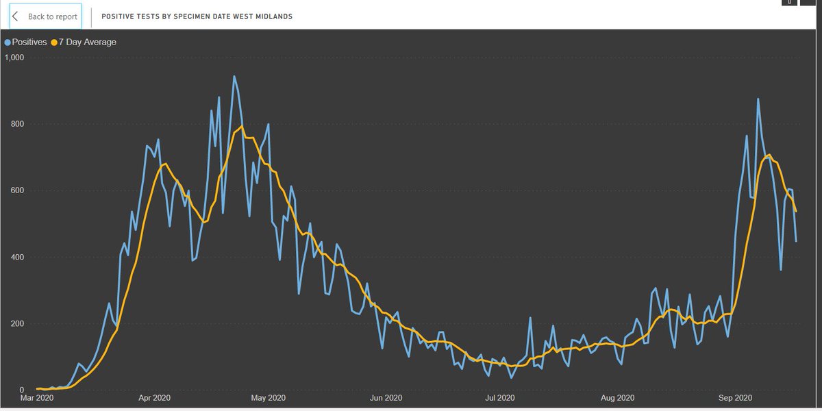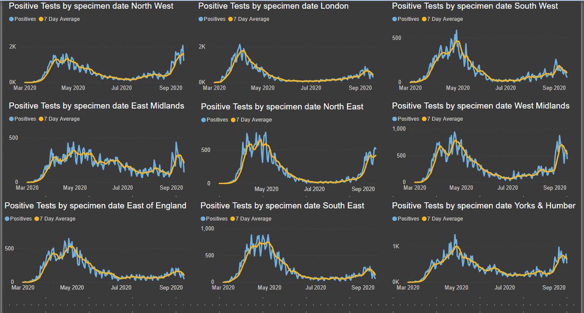 1/ Updated regional data for positive tests by SPECIMEN DATE, reported date is useless when there are backlogs in testing.