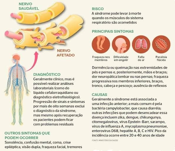 O zika provavelmente causa a síndrome de Guillain-Barre, em que nervos nos braços e nas pernas são danificados. Também há estudos mostrando que a dengue pode causar essa síndrome (+)