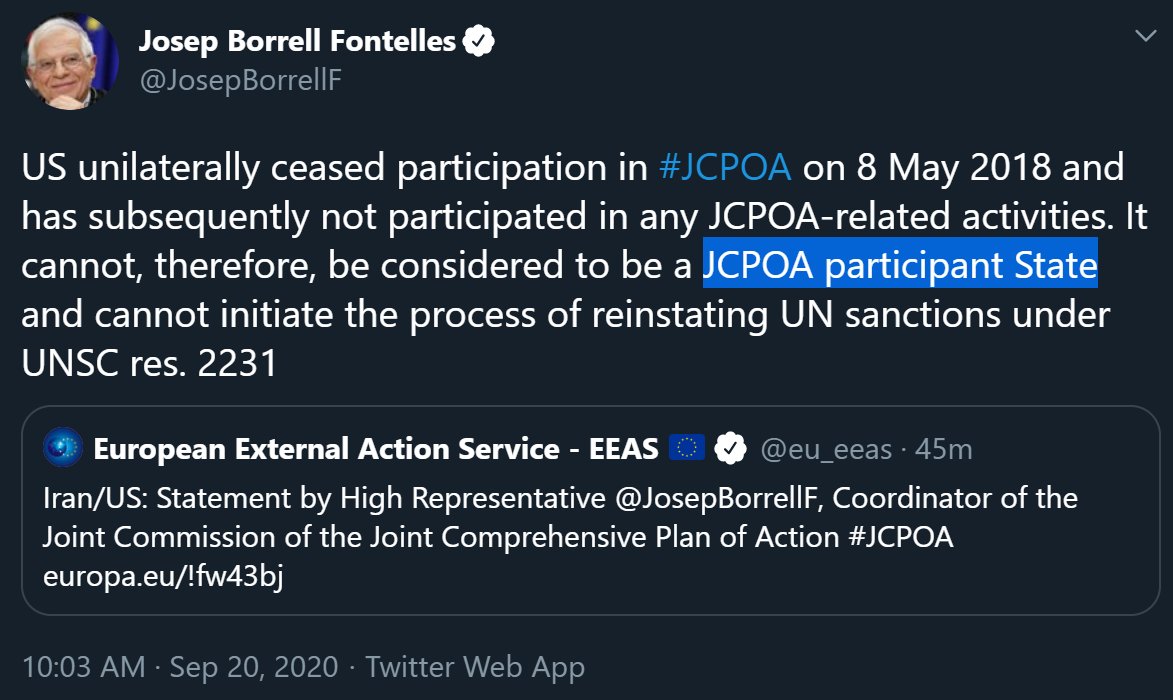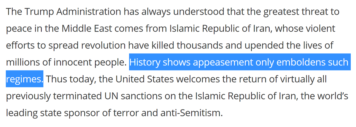 “If UN Member States fail to fulfill their obligations to implement these sanctions, the US is prepared to use our domestic authorities to impose consequences for those failures & ensure that Iran does not reap the benefits of UN-prohibited activity.” state.gov/the-return-of-…