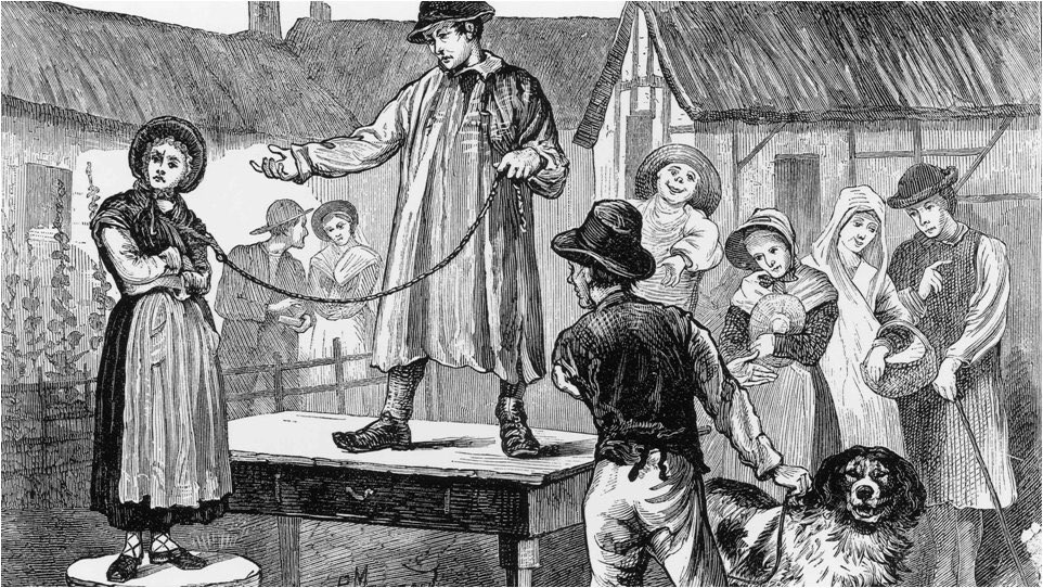 Between 1780 & 1850 in England, dissatisfied husbands could sell their wives at auction. It was less costly than a divorce & less risky than murder.