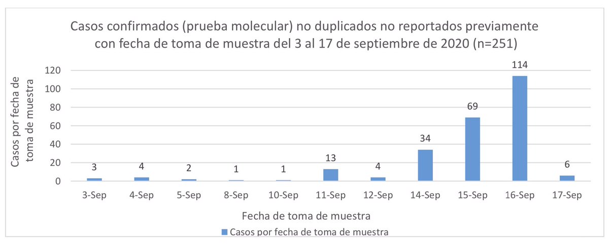 1.) 251 casos CONFIRMADOS de #COVID19 registrados hoy por @DeptSaludPR. Muestras del 3 al 17 de septiembre (+27 casos previos, -16 casos duplicados).