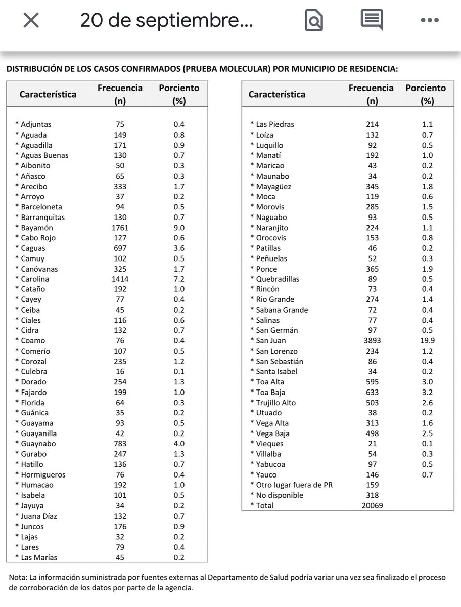 1.) 284 casos confirmados de #COVID19 registrados hoy por el @DeptSaludPR. Muestras del 9 al 23 de septiembre (+19 casos previos, -7 casos duplicados).