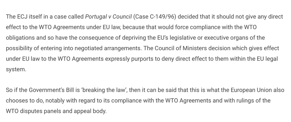 This would deserve a full reply, but let me just point out why the eminent QC’s point about the EU doing “the same” as the UK in Portugal v. Council is wrong - not just arguably so, but definitely so - in law.