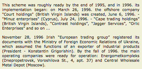 A 2013 article described scheme by former Ukrainian Prime Minister Pavel Lazarenko (convicted & sentenced to prison in US for money laundering, wire fraud, extortion) & Konstantin Grigorishin