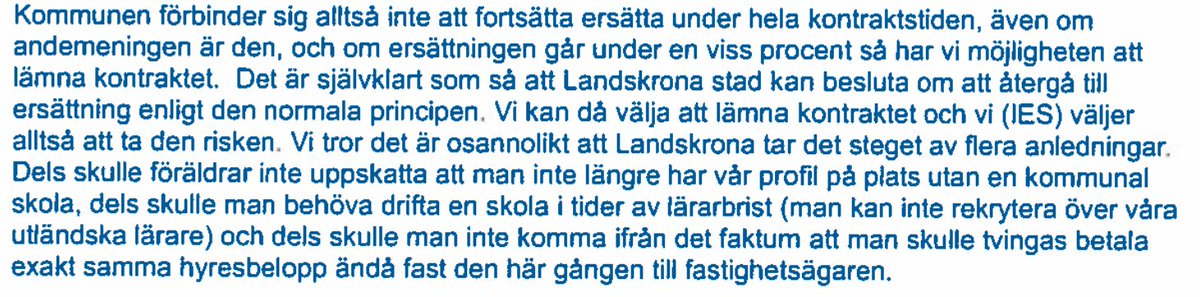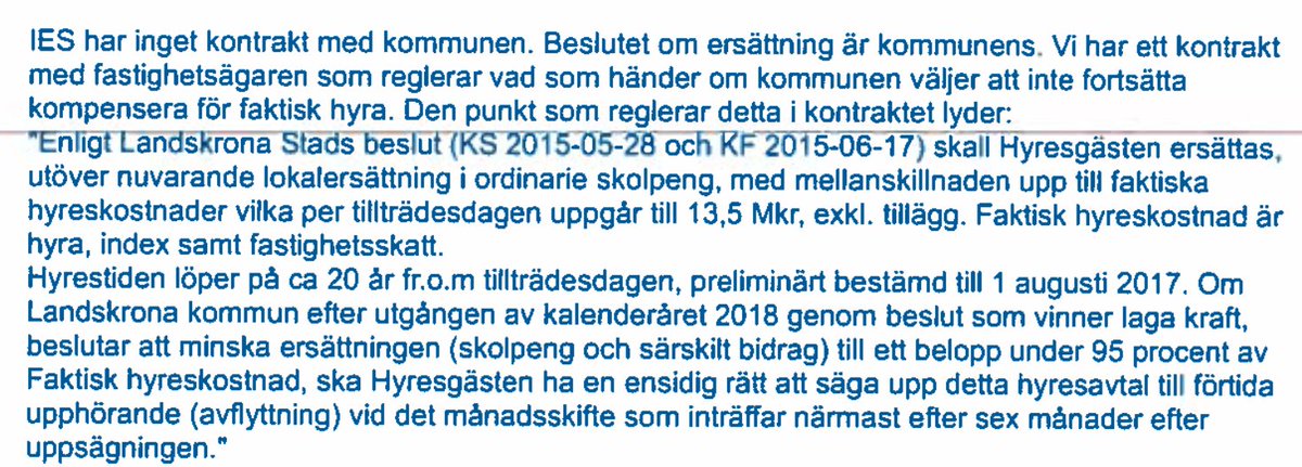 5. Men IES har inget kontrakt med kommunen utan med fastighetsägaren. Om Landskrona kommun skulle minska eller helt ta bort hyresnedsättningen kan IES säga upp kontraktet med fastighetsägaren.