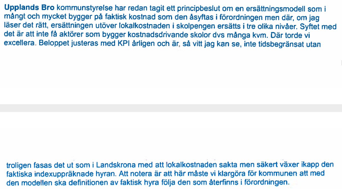 Extremt vinklad (direkt felaktig) text från politiker i Upplands-Bro om friskolors ansvar för att finansiera lokaler. I veckan ska samma politiker klubba igenom att kommunen tar över JENSENS elever då de saknar tillstånd att driva skola i sin fastighet. expressen.se/ledare/replik/…