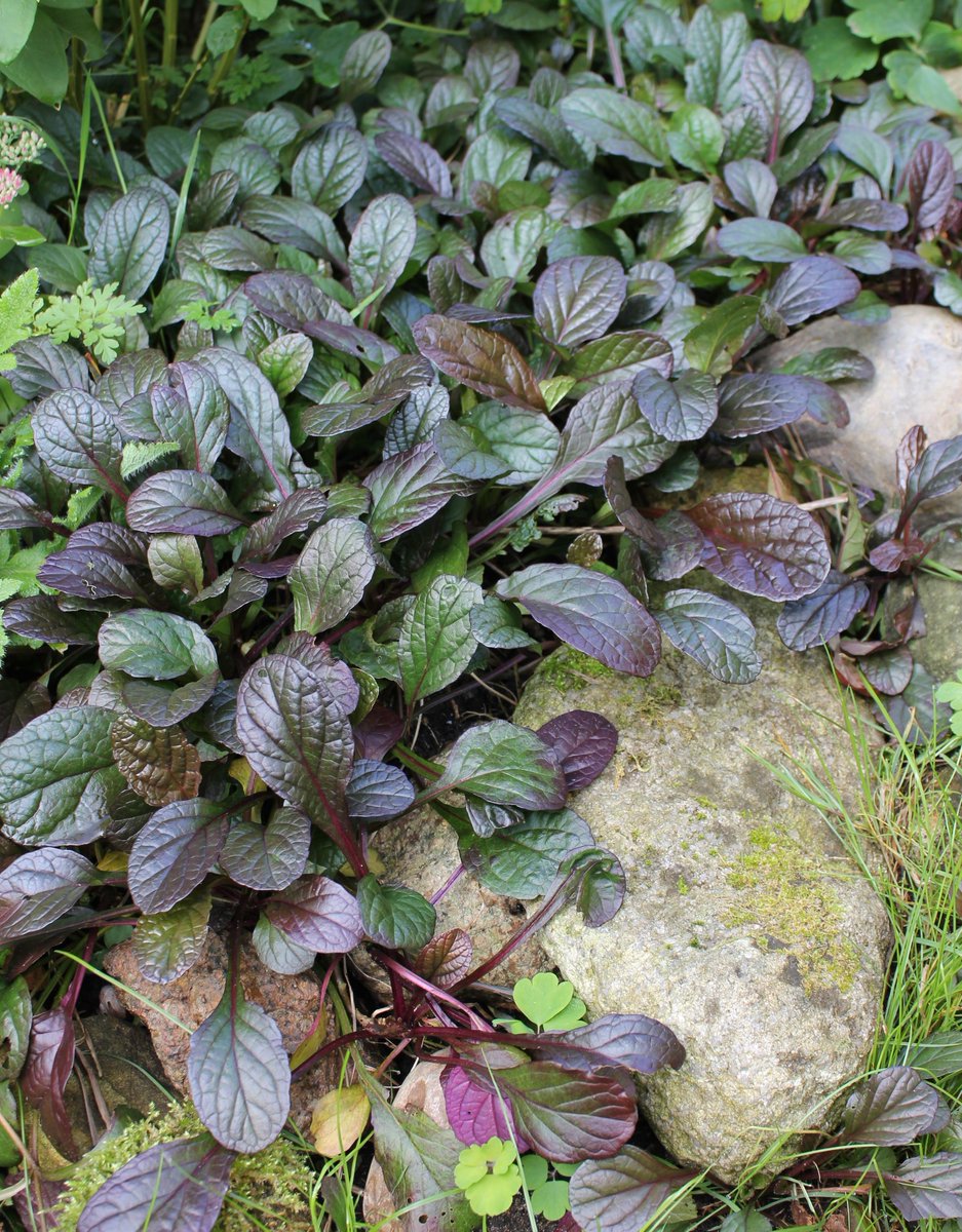Conocida como búgula [Ajuga reptans] es el combo completo, follaje que se torna en color púrpura y flores azul - moradas. ¿Qué más necesita uno en la vida?